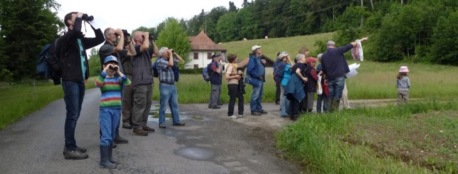 Wissenswertes war in diesem Jahr auf der öffentlichen Exkursion in der Gemeinde Schwarzhäusern zu erfahren. Die beiden versierten Exkursionsleiter führten abwechslungsreich durch die Welt der Vögel und der heimischen Pflanzen. Wie farbenfroh und wertvoll eine Blumenwiese ist, erfuhren die Teilnehmerinnen und Teilnehmer kurz vor dem Elektrizitätswerk Wynau. Nur der Flussuferläufer am gegenüberliegenden Ufer der Aare vermochte von den botanischen Ausführungen abzulenken. Wenige Gehminuten später, rückte ein Horst mit jungen Rotmilanen in den Fokus der Feldstecher. Wiederum blumiges stach beim Blick in das Naturschutzgebiet „alte Kiesgrube Schwarzhäusern“ ins Auge. Die vor Jahren durch Aussaat angesiedelten Flügelginster waren in voller Blüte. Die Bienen summten zu Vielen über dem gelben Blütenteppich. Die vielfältige Wildhecke auf den letzten Exkursionsmetern machte bereits ohne ergänzende Worte Werbung in eigener Sache: einheimische Gehölze erfüllen alle Ansprüche an eine „Gartenpflanze“. Duftende Blüten, prächtige Beeren, grosse Formenvielfalt und Nahrung für unsere Tierwelt!